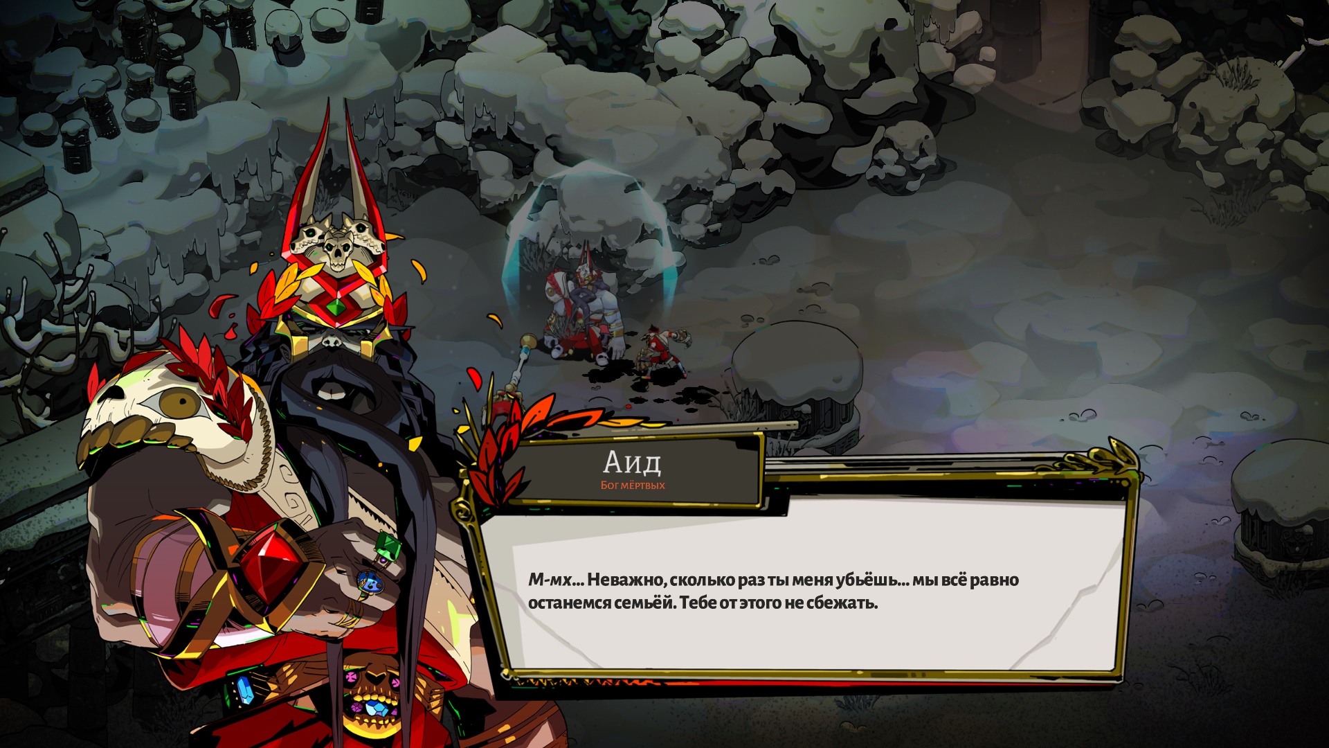 - Главная обитель. Погибая, Загрей возрождается во дворце Аида. В нем он может получить новое оружие, потратить найденные во время прохождения предметы (ключи и самоцветы) на постоянные улучшения, а также взаимодействовать с жителями царства мертвых. Диалоги с ними каждый раз разные, а некоторые возникают после выполнения определенных условий.