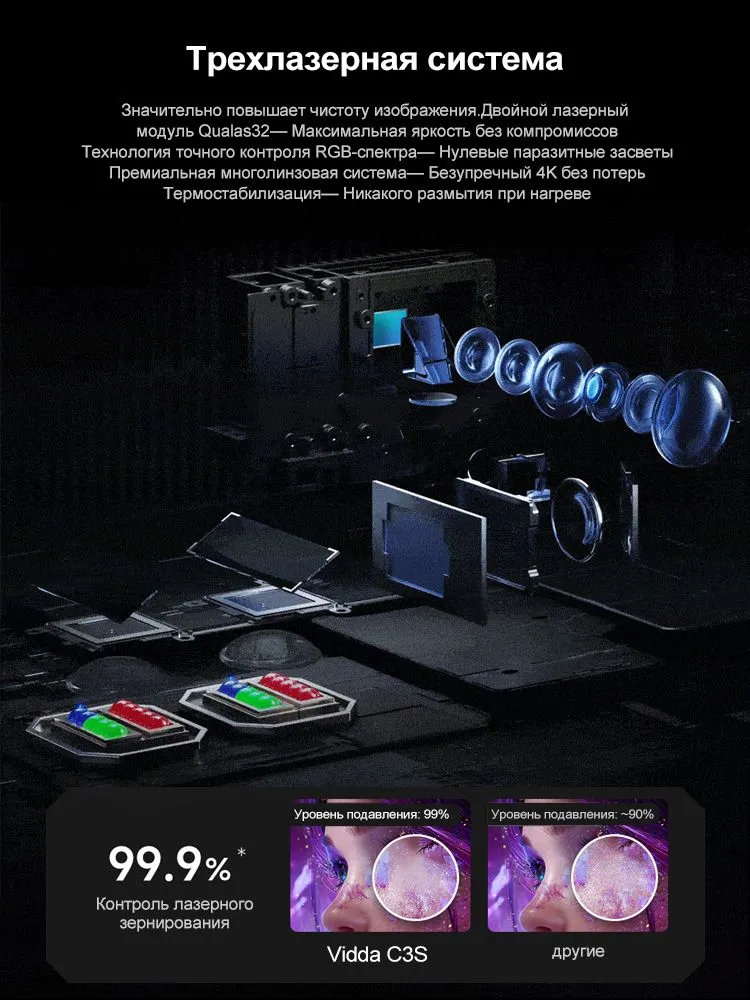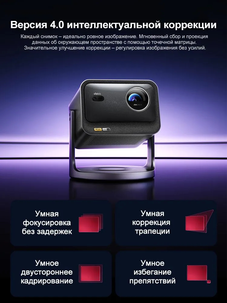 Проектор Vidda C3S откроет вам возможность создать дома уютный кинотеатр с помощью качественного проектора. Никаких искажений и мутной картинки - вас ждет разрешение 4K как на близких, так и на дальних расстояниях. Контрастность проектора остается высокой в любых условиях, и вы сможете рассмотреть детали изображения даже в темноте. Благодаря технологии рассеивания Spiegel можете забыть про мутное изображение.